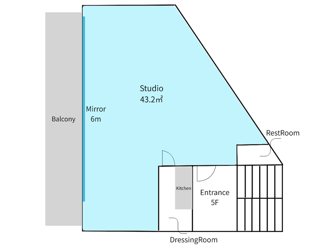 面積43㎡/天井高さ2.6mの広々としたスタジオです。
